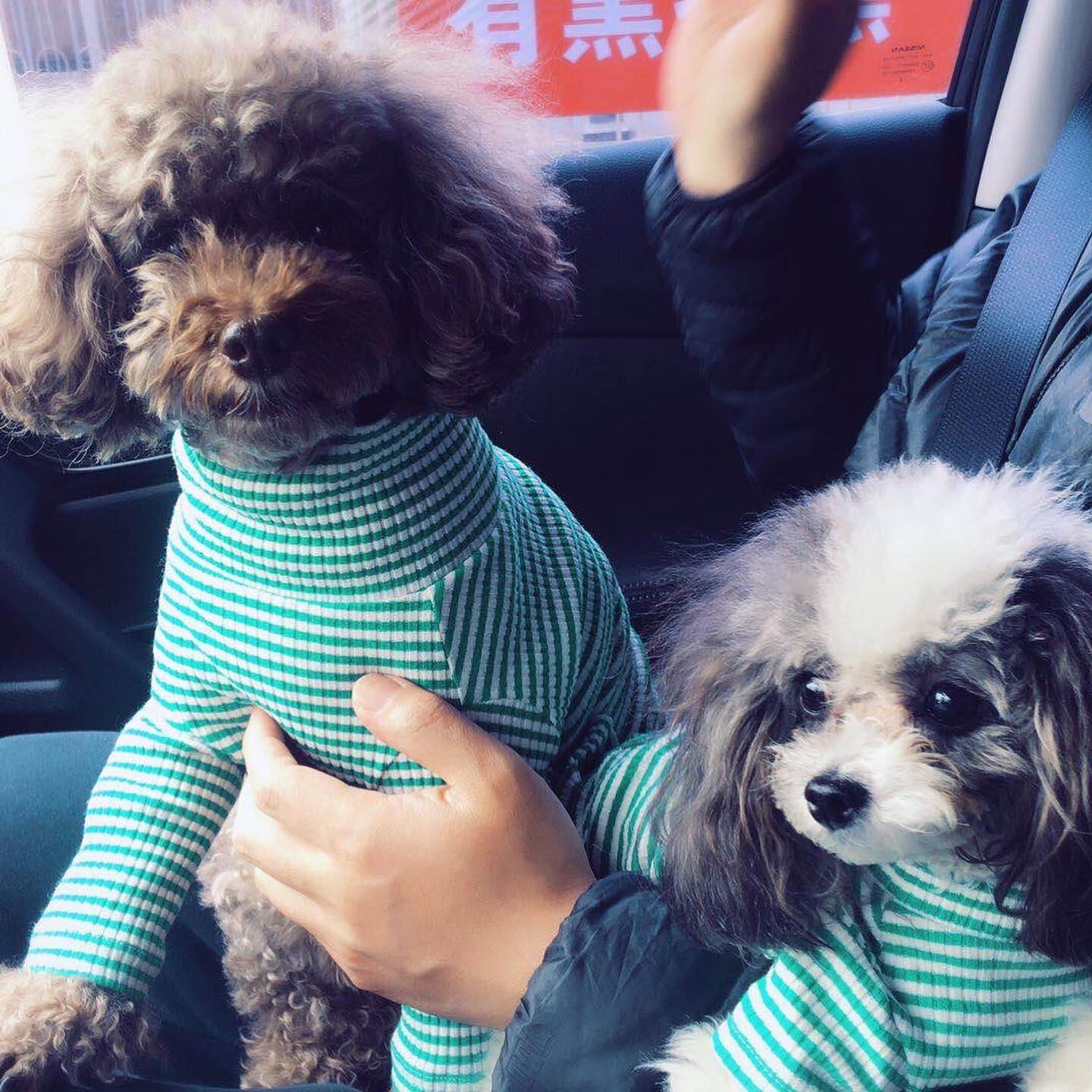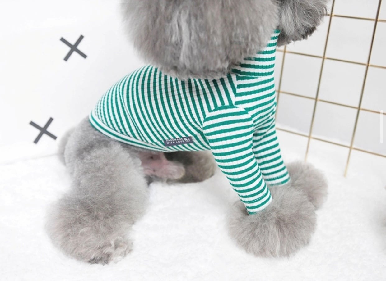 【即納】【日本初上陸】犬服 PEEKAPOODLE グリーンボーダーインナー ロンT/ワンピース